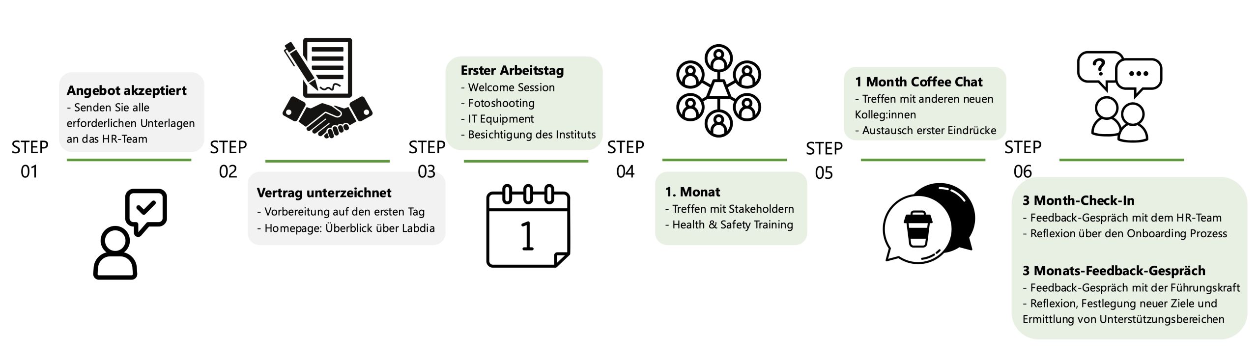 Die HR Onboarding-Phase dauert rund drei Monate – eine spannende, aber auch intensive Zeit, in der Sie viele neue Eindrücke sammeln und Labdia Labordiagnostik sowie unsere Arbeitsweise kennenlernen.